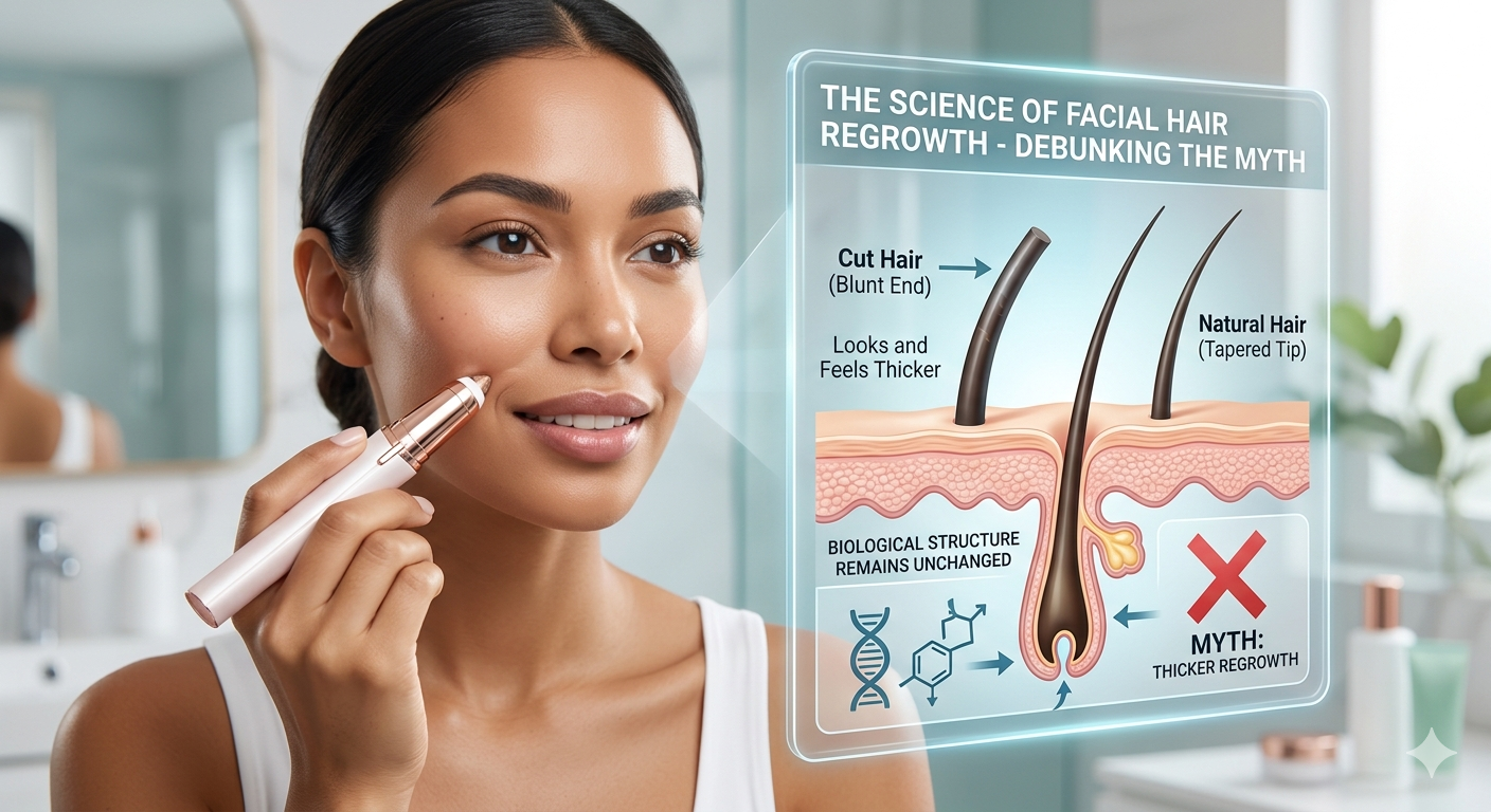 Hair thickness and growth rate are determined exclusively by genetics and hormonal factors rather than external removal methods. Every human hair grows from a follicle deep within the dermis layer of the skin. When you use a facial hair remover, you are either cutting the hair at the surface or pulling it out from the root. Neither of these actions communicates with the bulb of the follicle to produce a thicker strand. The follicle follows a predetermined cycle—anagen (growth), catagen (transition), and telogen (resting)—which is regulated by internal signals such as androgens and blood supply.